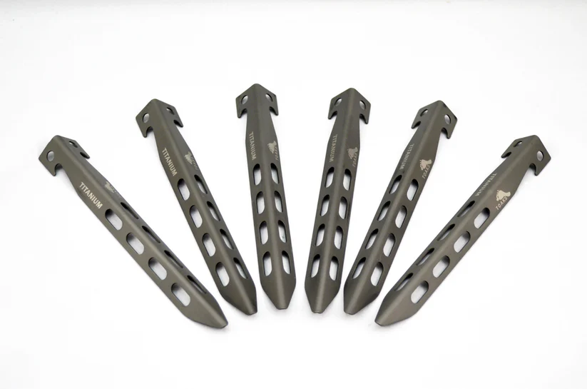 Made from corrosion‑resistant titanium alloy, these pegs are lightweight yet durable enough for repeated use. The V profile and long shaft provide excellent holding strength without adding unnecessary bulk to your kit. Available as a single or in a six‑pack (with storage pouch), they scale easily to the shelter and conditions you expect to face.